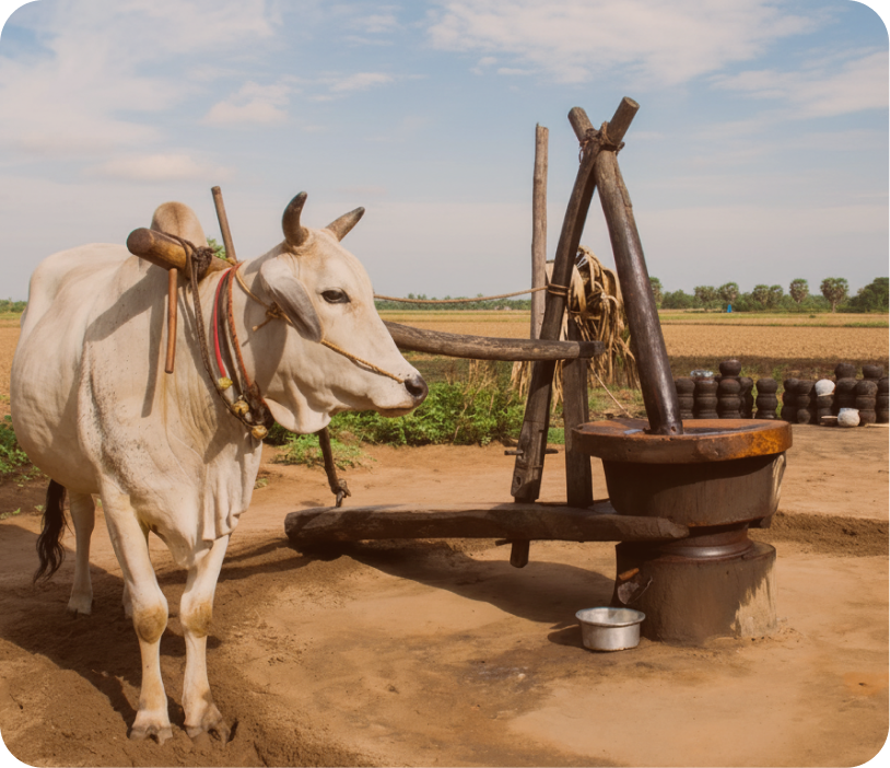 Mana Ganuga works with farmers and ganuga operators who never stopped doing things the right way. Seeds are sourced directly, pressed slowly using wooden ganuga and bulls, and packed fresh, without preservatives, chemicals, or shortcuts. Nothing is stored to wait. Nothing is altered to last longer.
